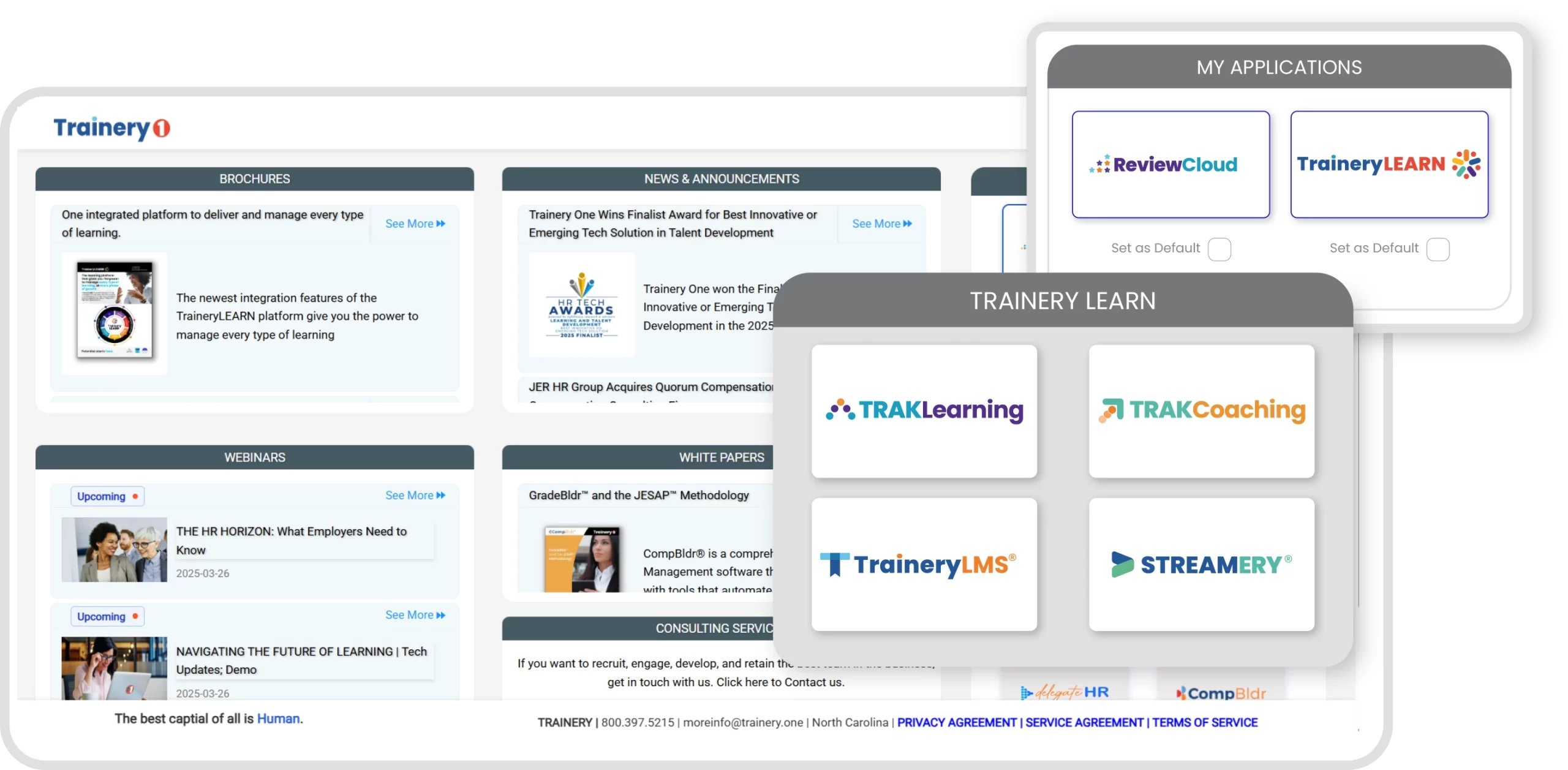 Centralized employee data is more than employment history. TraineryHCM enables employers to set up a centralized view of an employee’s engagement across Trainery’s learning, development, and performance.