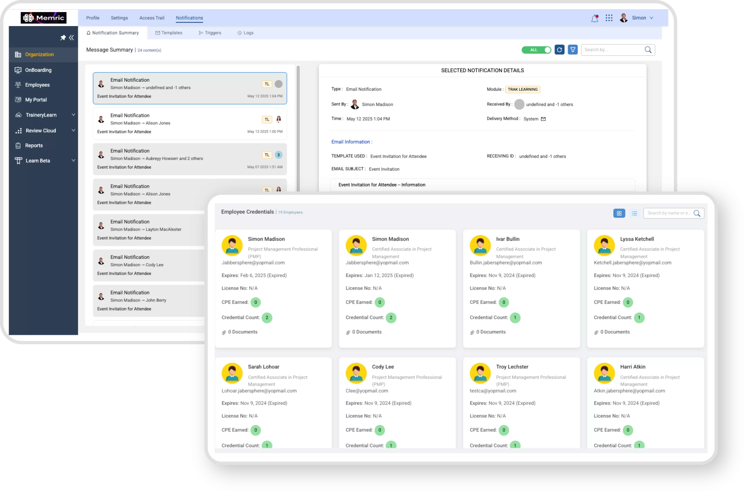 Don’t just list credentials in a box. Our centralized employee management system lets you monitor learning needs, manage expirations, set automated notifications and alerts, and digitally archive credential documents.